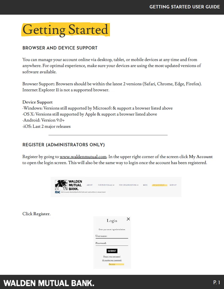 Wondering what it takes to get your organization started at Walden Mutual? Review the information below to ensure you're setup for success.