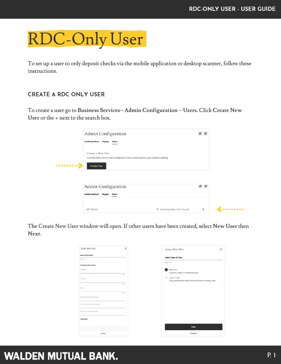 Great! You should have received an email with a link to our application portal. Please fill out the following: Legal name, date of birth, physical address, phone number, Social Security Number, valid government ID. Why do we collect all of this? At Walden Mutual, we require all of our partners - what we call our customers - to provide personal identification. As an authorized signer or beneficial owner, you’re considered a partner. This helps us ensure that we’ve accurately identified everyone who will be transacting on the account or has ownership in the business.